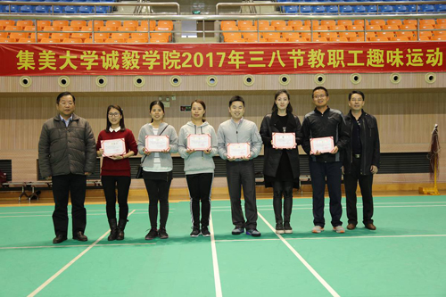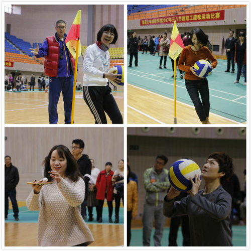 学院还举办了趣味比赛。通过巧托乒乓球、一投即中、抱球穿越障碍、急速转圈等多个环节的角逐,学院思政公体教学部工会小组凭借默契的配合获得了冠军;实验管理中心工会小组、信息工程系工会小组分别获得亚军、季军。赛后,学院部门工会向全院女教职工发放了慰问品。